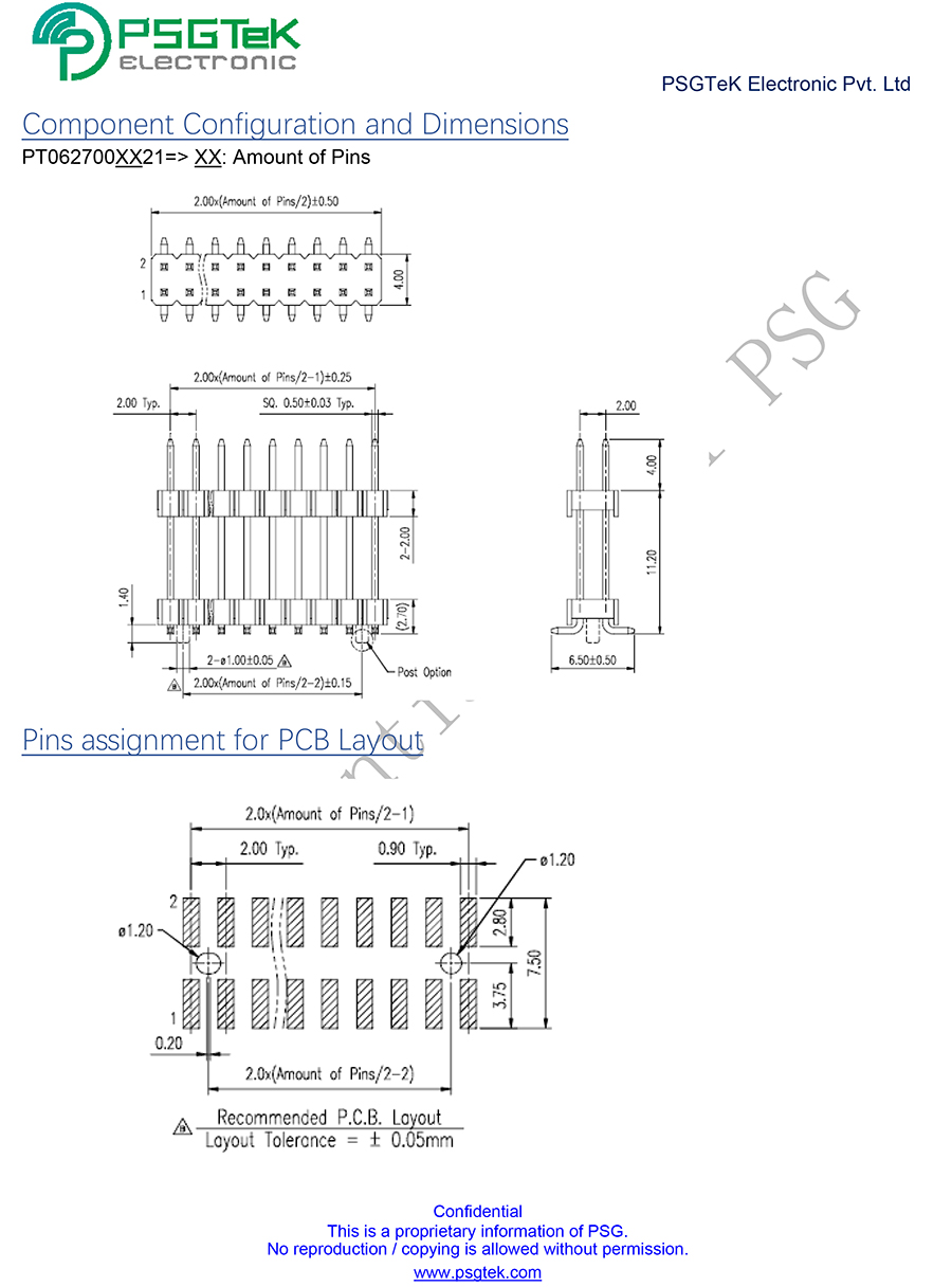 Pitch 2.00mm pin header dual row SMT without post DH