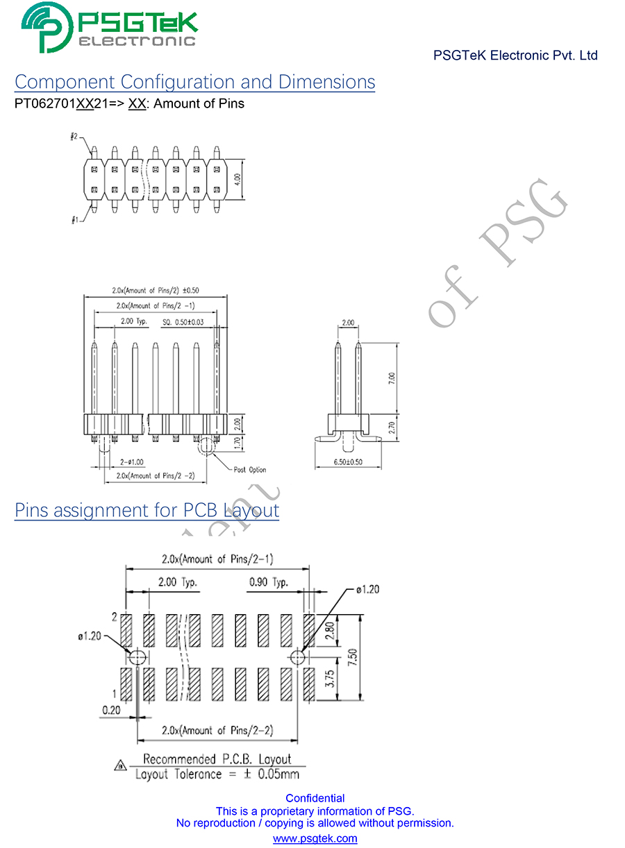 Pitch 2.00mm pin header dual row SMT without post SH
