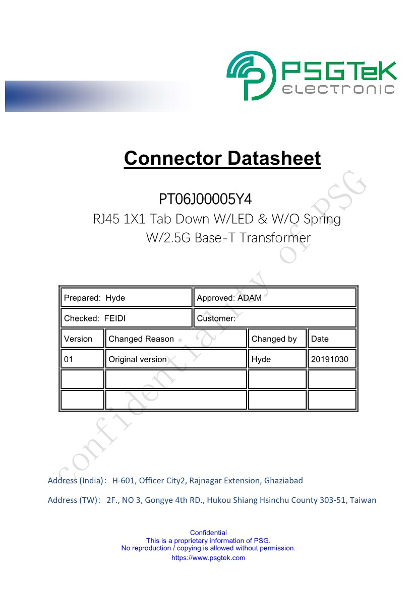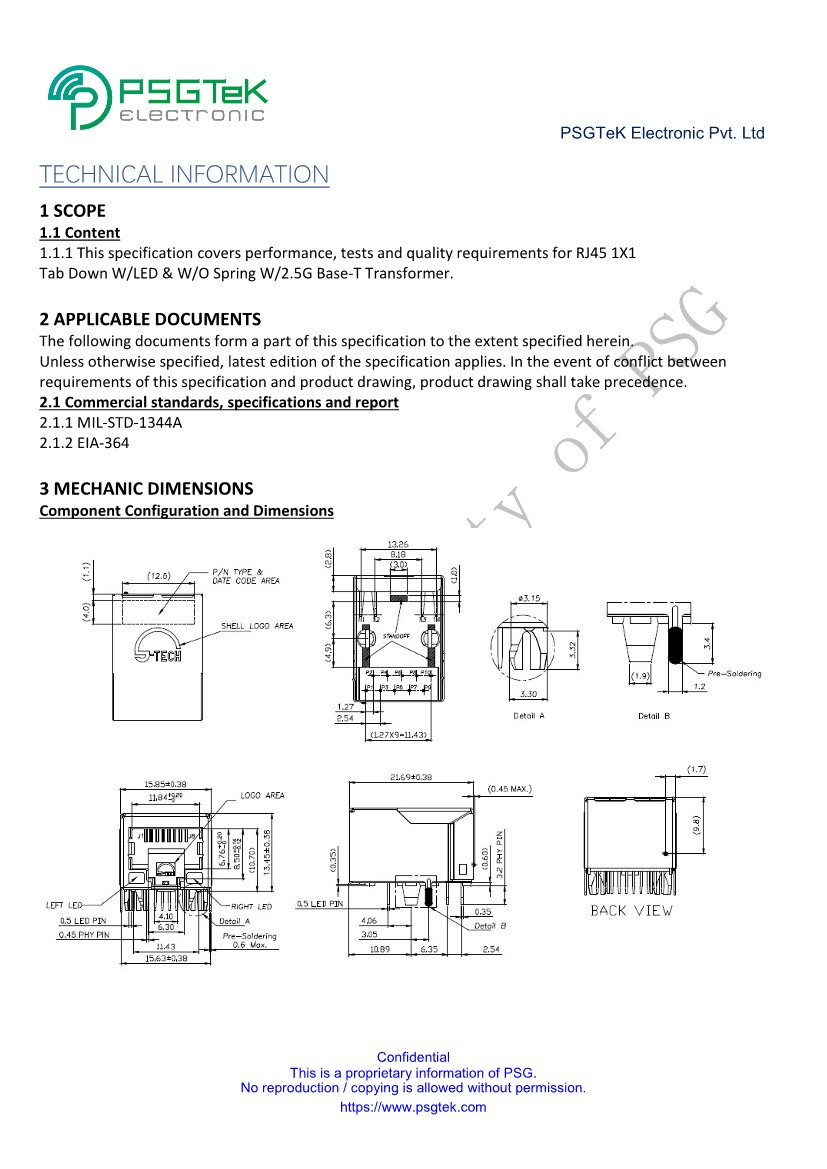 RJ45 1X1 Tab Down W/LED & W/O Spring