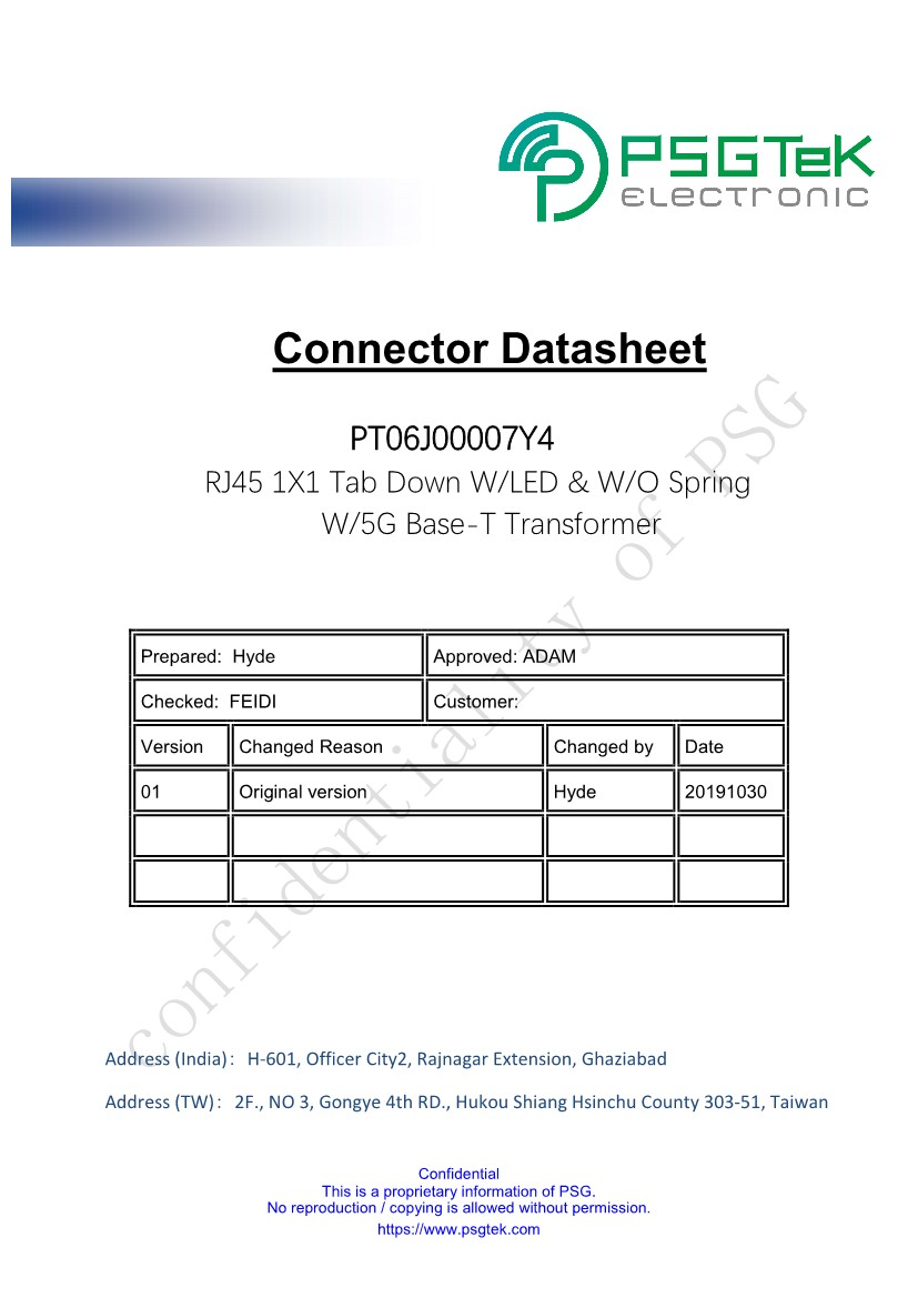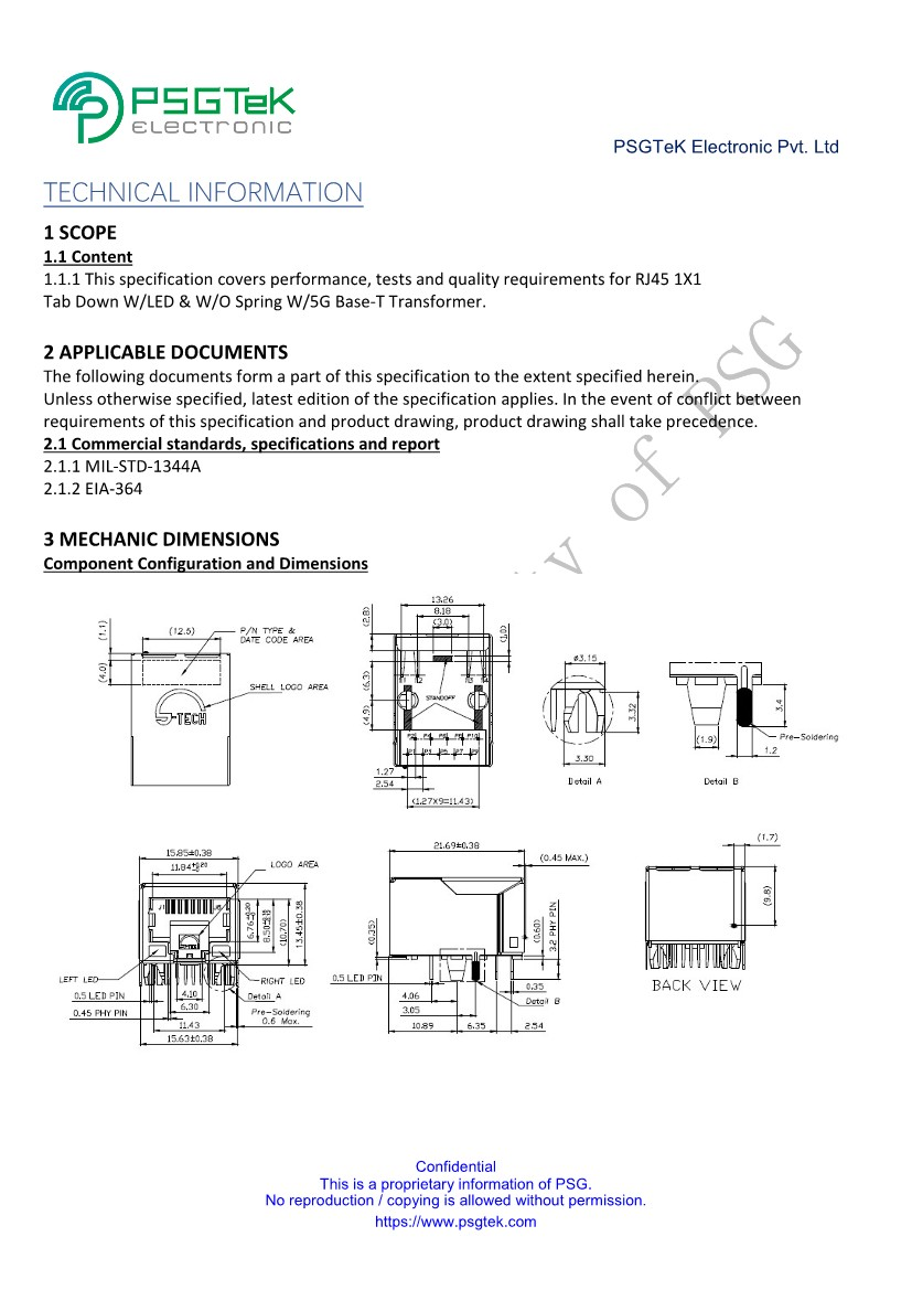 RJ45 1X1 Tab Down W/LED & W/O Spring