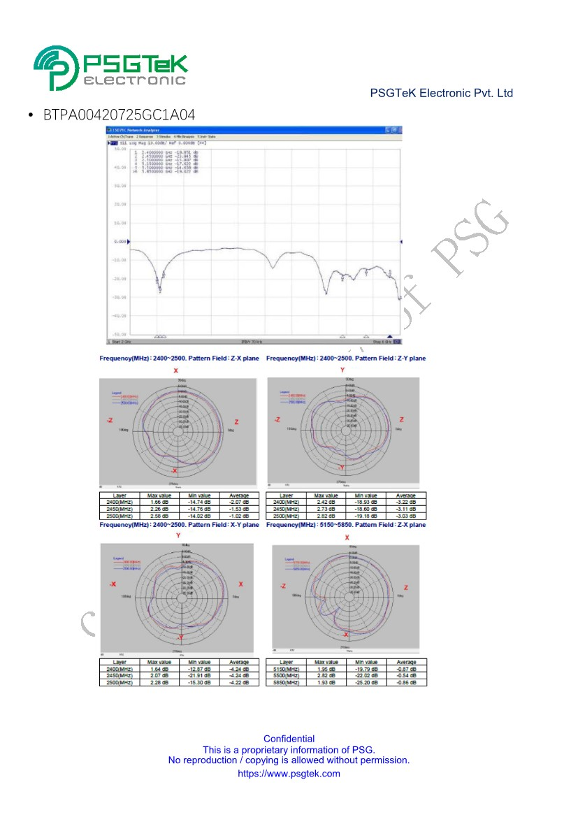 BTMA00290825GD1A02Matel Antenna;  2.4~2.5&5.15~5.85GHz; RL=-10dB; Peak   Gain=2.71&3.02dBi;20191022华新科WIFI;BLUETOOTH; NFCMETAL ANTENNA