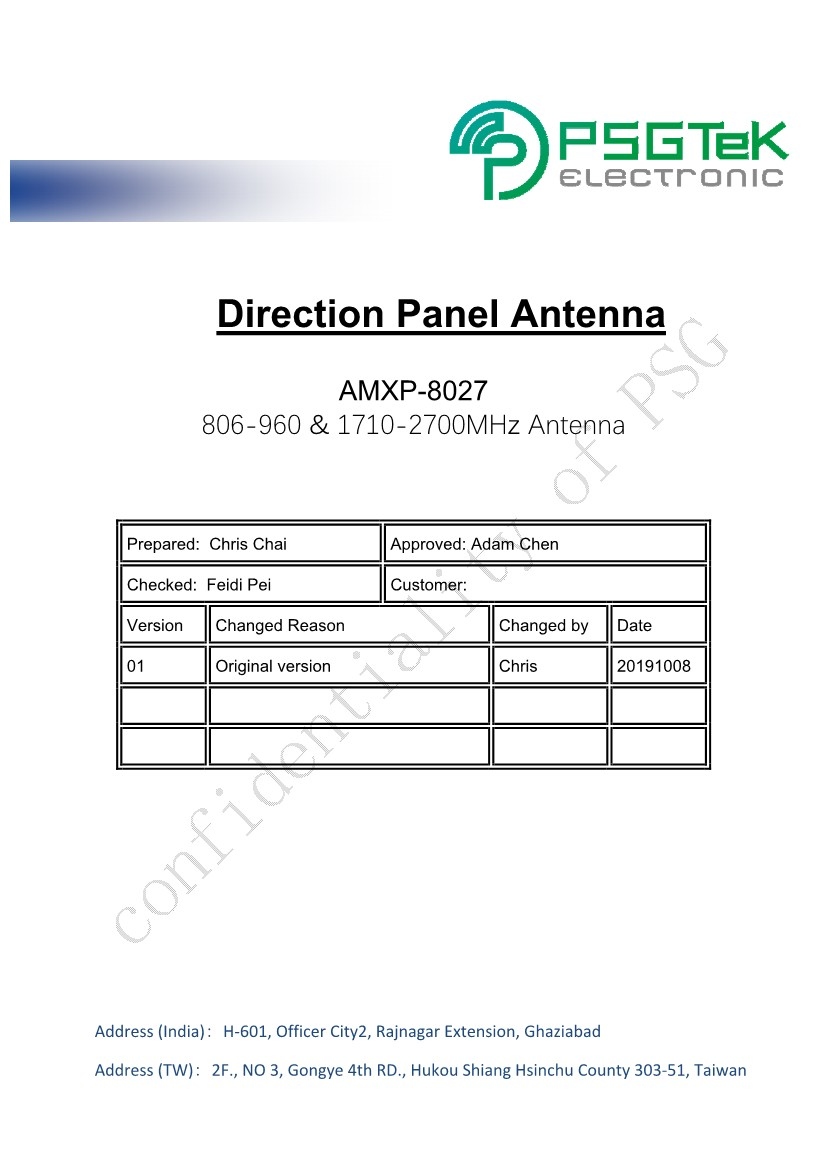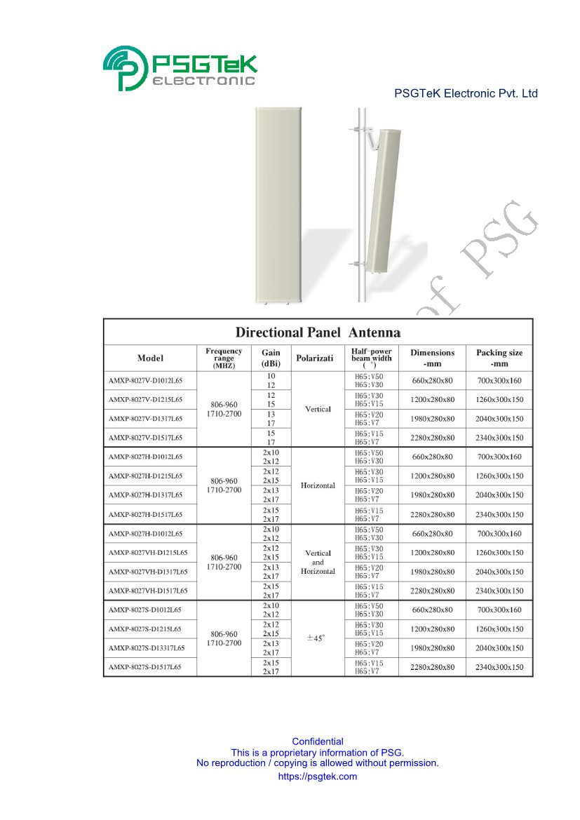 | AMXP-8027V-D1012L65 | Directional Panel Antenna; 806~960&1710~2700MHz; Vertical Polarization | 20191016 | AMX | CELLULAR | ISM; IOT; CAT M1 | EXTERNAL PANEL ANTENNA |