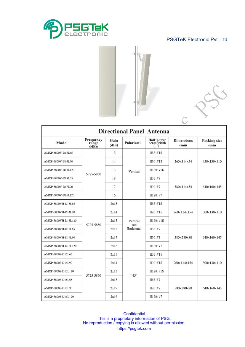 | AMXP-5800S-D18L65 | Directional Panel Antenna; 5725~5850MHz; ±45° Polarization | 20191016 | AMX | EXTERNAL PANEL ANTENNA |