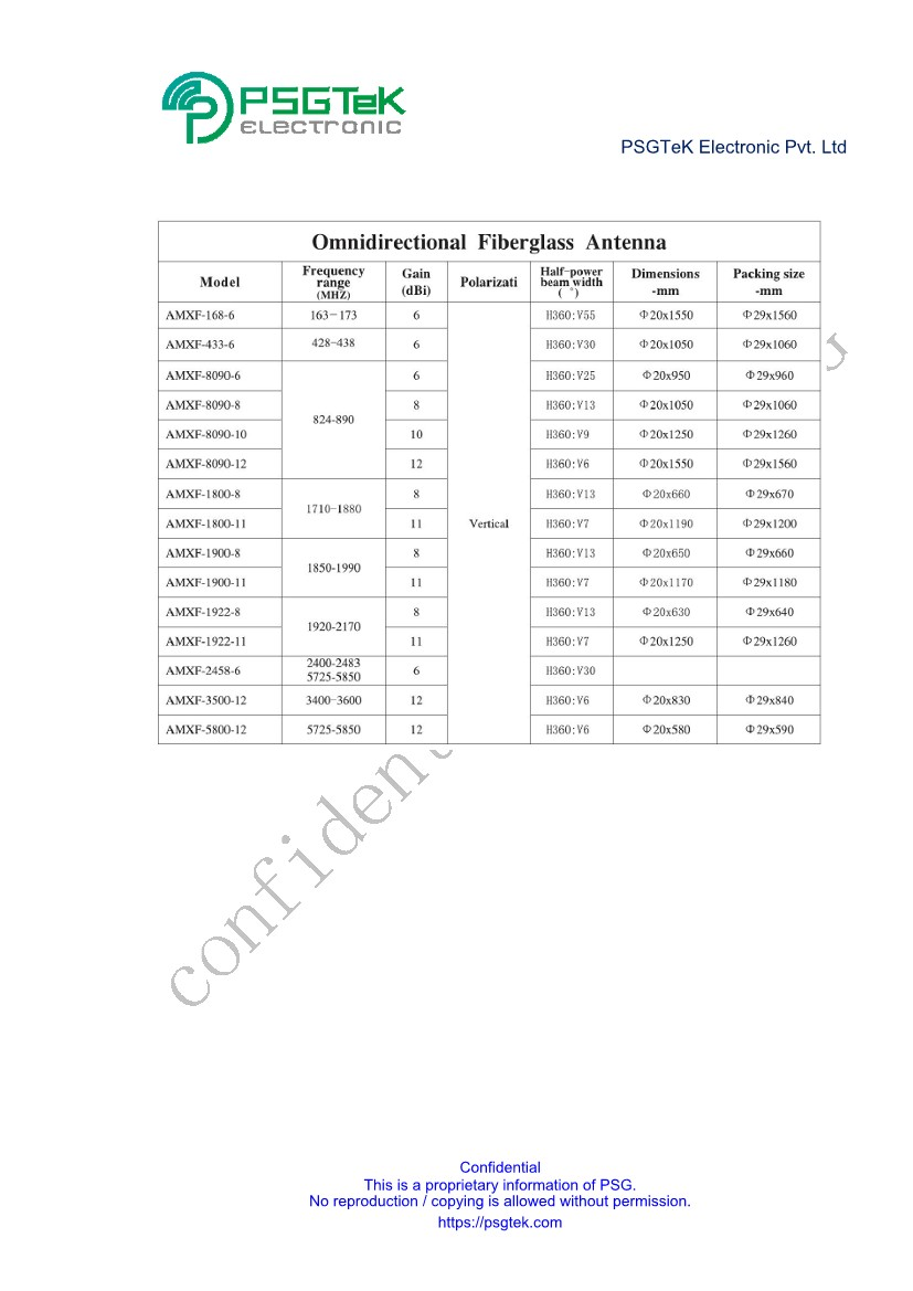 | AMXF-168-6 | Omnidirectional Fiberglass Antenn; 163~173MHz; Vertical Polarization | 20191016 | AMX | ISM; IOT; CAT M1 |